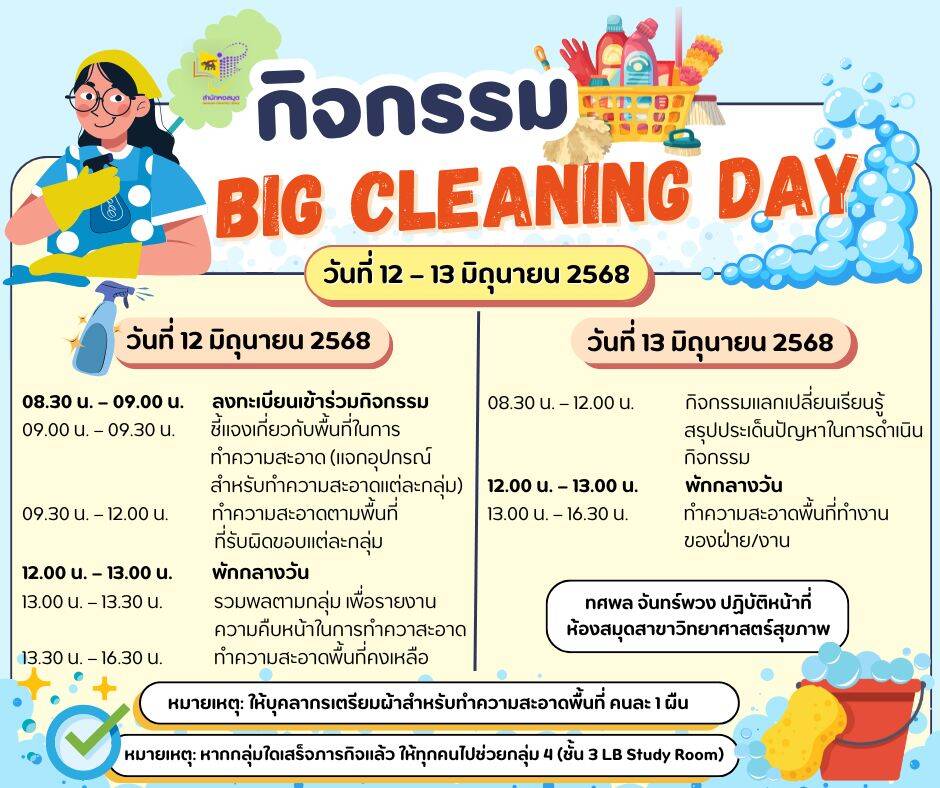 สำนักหอสมุด มหาวิทยาลัยนเรศวร จัดกิจกรรมทำความสะอาดพื้นที่ให้บริการ พื้นที่นั่งอ่าน อาคารแสงเทียน อาคารเรียนรู้ ก่อนเปิดเทอม โดยเมื่อเวลา 09.00 น. ผู้ช่วยศาสตราจารย์ ดร.มาร์ฎา ชยทัตโต ผู้อำนวยการสำนักหอสมุด กล่าวเปิดกิจกรรม Big cleaning Day ประจำปี 2568 นี้ กิจกรรมจัดระหว่างวันที่ 12-13 มิถุนายน พ.ศ.2568 บุคลากรสำนักหอสมุดเข้าร่วมกิจกรรม จำนวน 50 คน