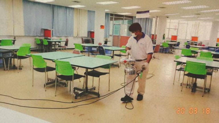 18-20 มี.ค.63 พ่นหมอกด้วยน้ำยาฆ่าเชื้อเดทตอล บุคลากรจากฝ่ายงานต่าง ๆ ทำความสะอาดจุดสัมผัส เพื่อลดการแพร่กระจายของเชื้อไวรัสโคโรน่า 2019 ภายในอาคารเรียนรู้ สำนักหอสมุด28 June 202228 June 2022