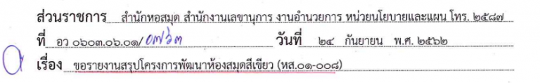 สรุปโครงการพัฒนาห้องสมุดสีเขียว 2562